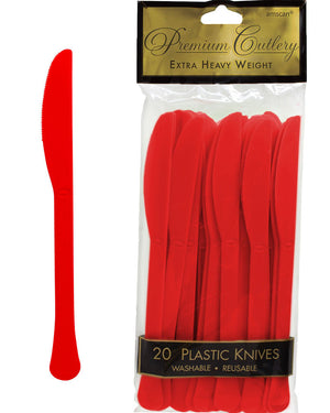These Apple Red Plastic Knives will look great and make clean up a breeze at your next party. The pack contains 20 knives which are made from heavy weight plastic and can be washed and reused.