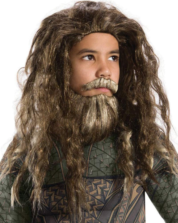 Aquaman Long Brown Kids Wig and Beard Set