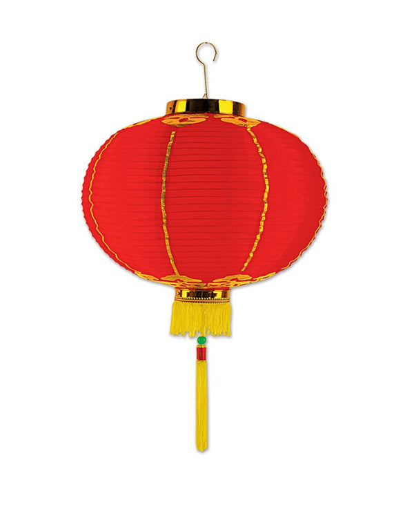 Decorate your Chinese New Party with this beautiful Asian Good Luck Lantern. This lantern is made of red paper material wtih attached gold fabric tassels hanging from the bottom. There is an attached hook at the top for easy hanging. Match up with our range of Asian party supplies and accessories for a co-ordinated look.