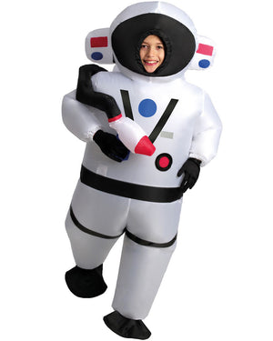 Children with a costume party on their calendar can show up in an out-of-this-world outfit with this Astronaut Inflatable Kids Costume. Included is a full-length, white inflatable space suit with black, red and blue printed details. An inflatable handheld device is attached to the back of the suit with a black tube and can be used as a pretend scanner, vacuum, laser, weapon, etc. Their imagination is the limit! This is an iconic and easily distinguishable costume that lends itself to a variety of movie and TV show characters, space-themed events, dress-up parties and more. Complete the look with black shoes and black gloves.