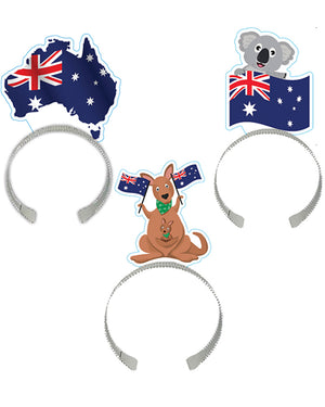 Show your Aussie pride with our Australian Headbands Pack of 8. These true blue headbands come in a pack of 8 with an assortment of designs featuring a Kangaroo waving Australian flags, a grey koala with the National Flag, plus Australia with the flag colours. Fantastic for wearing to your Australia Day BBQ!