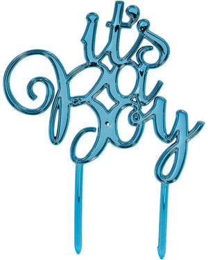 This adorable Baby Shower it's a Boy Plastic Cake Topper is perfect for decoration the cake at your baby shower. The cake topper is made from a light weight plastic and is a metallic blue. It features the words "it's a Boy" written in cursive.