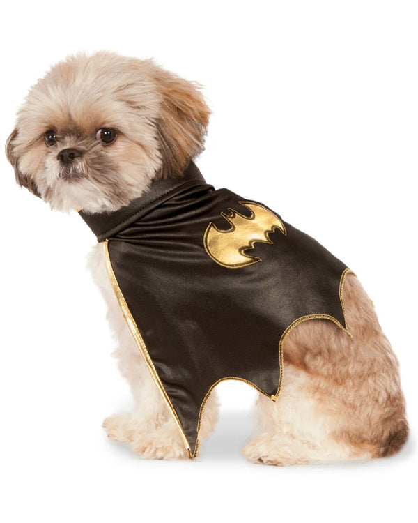 Your pet will be the life of the party in this adorable Batgirl Cape Pet Costume. Included is a pet-sized black cape that fastens around your pet's neck, with gold trim and a metallic gold bat logo. Perfect for letting your pet dress up for any upcoming costume parties, or even just a fun way to look fancy for a walk to the park.