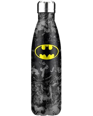If you're thirst can only be quenched with justice then you need this Batman Metal Drink Bottle 500ml. Coated in iconic images form the historic lineage of Batman comics this drinks bottle is for the DC fan in your life. The muted black and grey colour palette is shocked to life with the splash of yellow behind the bat symbol. Make someone's day by combining this gift with any one of our incredible Batman or Justice League products.