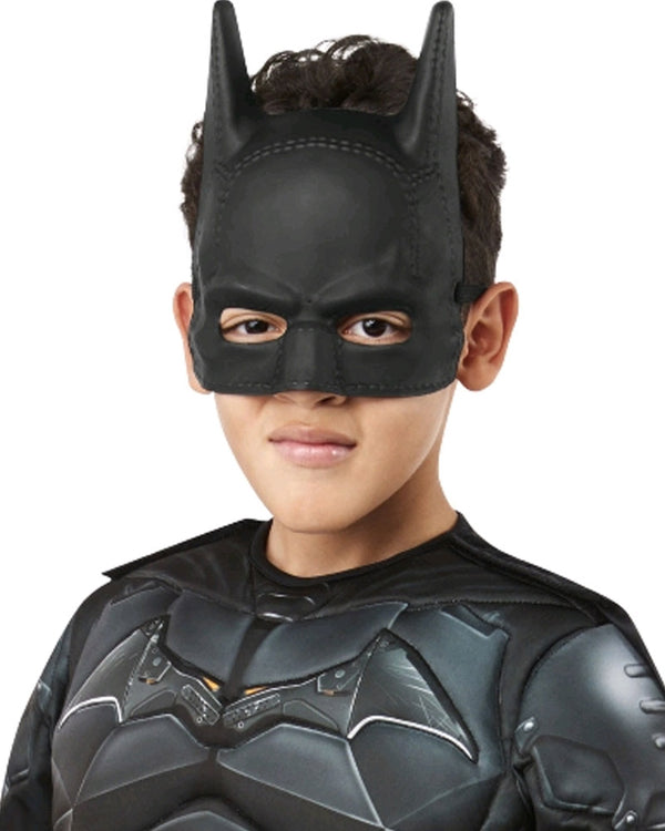 Finish off your Batman costume with this Batman The Batman Kids Half Mask. The mask is made from moulded black plastic and is designed after the mask seen on Batman in the 2022 film, The Batman, starring Robert Pattinson and has moulded facial features and upright bat ears. To secure in place, there is an attached elastic strap and velcro fastening at the back. Just grab some black eye makeup and you're all set to stalk the shadows of Gotham.