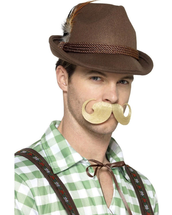 To finish your Oktoberfest costume check out this Bavarian Deluxe Trenker Hat. Featuring a Bavarian-inspired hat including a brown hat with a row of dark brown string wrapping around stem and 2 feathers attached at the side. Just add a shirt, lederhosen, and socks to complete the look.