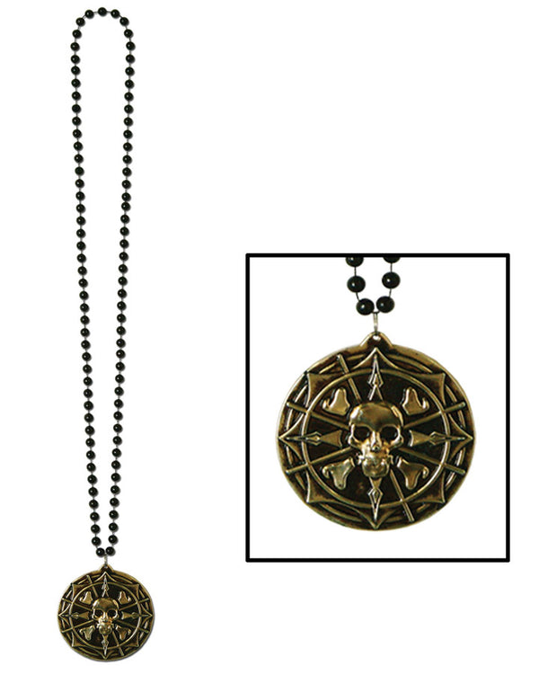 Share the curse with the cut throat pirates on the black pearl with this Beads with Pirate Coin Medallion. This great necklace will make a great addition to your next pirate costume.