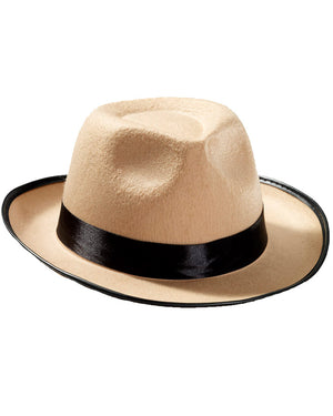 Complete your 1920's look with this stylish Beige Fedora. This cream beige fedora features a satin black hatband and matching black faux-leather trim. Made from a soft feel cardboard type of material. Really nice quality for the price. Wear it with your Roaring Twenties bootlegger, Vegas High Roller, Sugar Daddy Pimp, Al Capone, Gamblin' Man, 1920s Gun Moll or Hip-Hop Superstar Costume!.