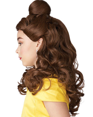 This stunning Belle Brown Kids Wig is a fantastic way to complete your Belle costume. Whether for your next Book Week event or princess party, this brown hairdo is perfect featuring a half-up half-down wig with curled ends and a clip on bun, just like Belle in the ballroom scene. Wear a wig cap for added comfort and to keep your own hair under wraps.