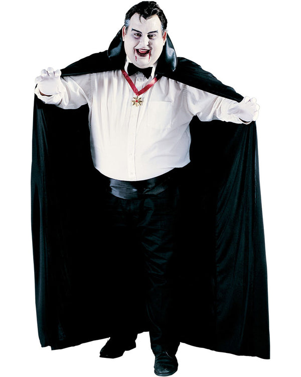 This Big and Tall Black Plus Size Adult Cape is perfect for completing your next Halloween costume, whether you're a vampire, warlock, magician or devil, you can be sure that this cape will keep you looming, dark and sinister. The cape measures over 180cm in length, is black and features a stiff upturned collar with a ribbon tie at the neck. Get this cape now so you're ready for Halloween!