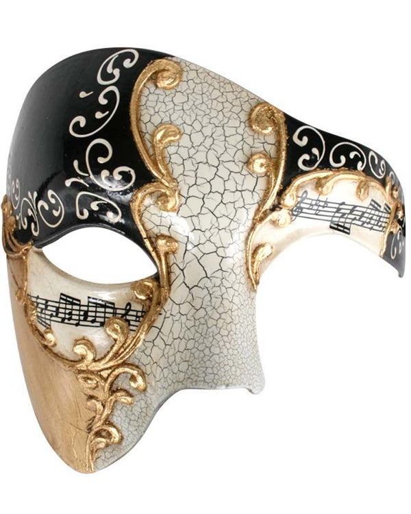 Wear this Black and Gold Maestro Eye Mask to your next masquerade party and get dramatic! Ornately decorated with a black, gold and white fine filigree pattern and designed to have one eye on show with the other mysteriously covered!