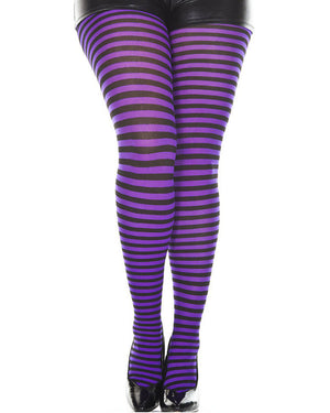 Black and Purple Striped Plus Size Tights