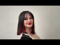 - Heat resistant two-tone black and red short bob wig.