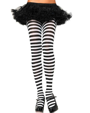 Add a little something extra to your costume with these Black and White Striped Tights. Great to match your next Alice in Wonderland outfit or any costume you want to add some fun! These comfortable tights feature black and white stripes and have a reinforced toe.