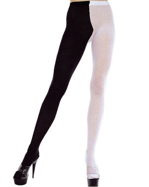 With one leg in white, and one in black, these Black and White Two Tone Opaque Tights are a great jester or pantomime accessory.