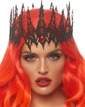 Rule your kingdom the way you want it to be run when you wear your finest gown and place this Black Die Cut Jewelled Glitter Crown upon your head. This unforgettable crown will have your subjects bowing to your every will and desire. Crown comes in a glittery black with a sharp edging design which shoots straight up and features red jewels all the way around. Whether you want to rule your kingdom with an iron fist or with a heavy heart, this is a crown for all queens.