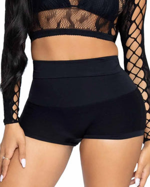 You can shake, you can shimmy, you can cartwheel and everything will stay in place and covered with these Black High Waist Shape Wear Shorts. The shorts are curve-hugging to accentuate you in all the right areas and feature a folded control waistband, a reinforced crotch and a cheeky booty. They're made from a form-fitting stretch fabric and can be worn under costumes for extra coverage or used as a standalone piece if you're attending a festival or rave and feeling daring.