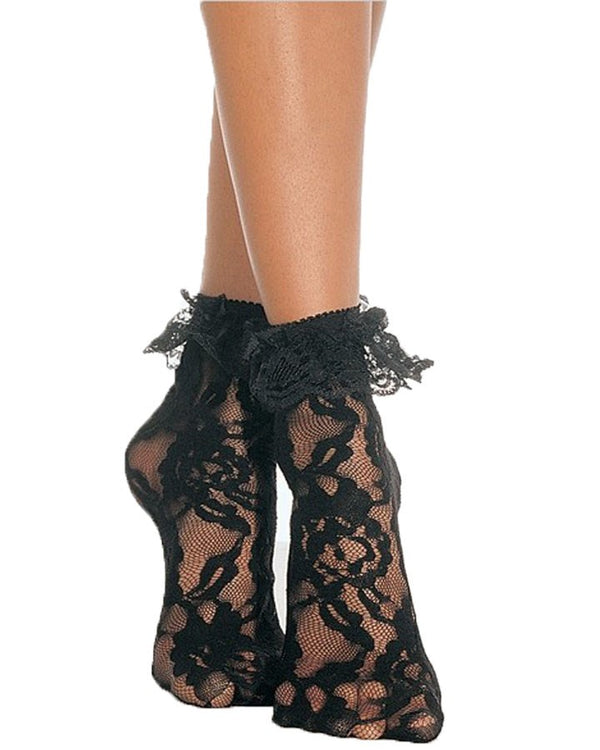 Complete your look with these Lace Ankle Socks with Black Ruffle. Racy, lacy and designed to rock any number of dress up styles.