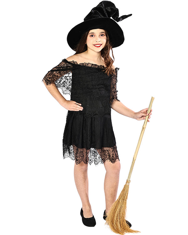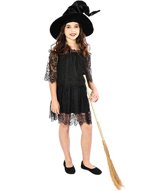 What better way to celebrate Halloween than with this Black Lace Halloween Girls Dress that's not only beautiful but also versatile? The gorgeous dress is black featuring an off-shoulder sleeve and black lace overlay. Simply add your own makeup, shoes, accessories and props to fit the character you're going for! For any witches out there, add a broom and hat. For those Day of the Dead skeletons, add some makeup and a flower crown. Or for vampires, add fangs and some fake blood. Halloween has never been so easy thanks to this versatile dress. You can even wear it as a cute everyday dress too.