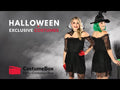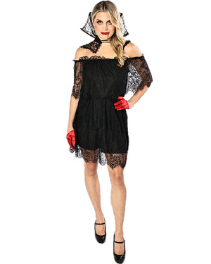 This Black Lace Halloween Plus Size Womens Dress is not only beautiful but so versatile to dress as a number of Halloween favourites. The gorgeous dress is black featuring an off-shoulder sleeve and black lace overlay. Simply add your own makeup, shoes, accessories and props to fit the character you're going for. For any witches out there, add a broom and hat. For those Day of the Dead skeletons, add some makeup and a flower crown. For daring devils, add horns, a tail and a pitchfork. Or for vampires, add fangs and some fake blood. Halloween has never been so easy thanks to this versatile dress. You can even wear it as a cute everyday dress too.