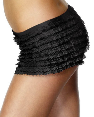 These boyleg style Black Lace Ruffle Shorts are ideal under shorter costumes or on their own. The shorts feature ruffles on the front and back.