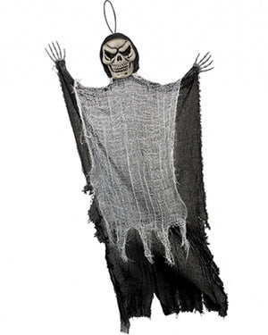 Your guests are guaranteed to get a fright when they see this Black Large Reaper Hanging Prop Decoration 1.2m. The prop features a skeleton head with outstretched arms wearing a hooded black and grey gauze cloth.