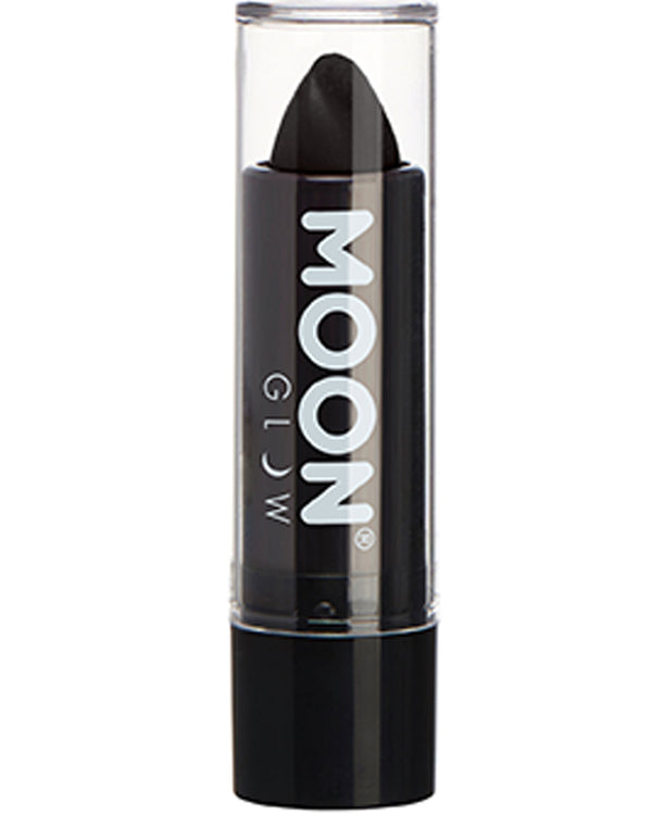 This striking Black Neon UV Lipstick 5g will be great for your next Halloween costume or everyday wear. The bold black is perfect for a Wednesday Addams costume, vampire, goth or punk costume. You can even paint your lips as you head on down to a club, festival, party, rave, or for any event and you'll rock that black lippy look to the moon and back! Your lips will emit an incredible fluorescent glow under any black light or UV lighting but will remain a bright bold colour in natural lighting. These Moon Glow lipsticks are a wax based matte lipstick that's easy to remove with makeup wipes or soap and water and are made completely cruelty-free! Get the full set including Neon UV pink, orange, yellow, green, blue and more!