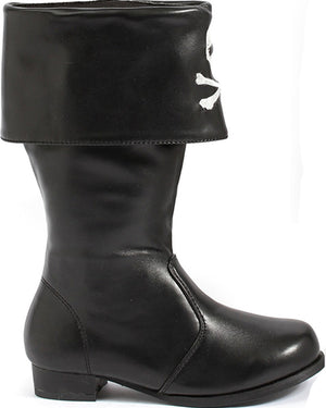 Stomp along the helm wearing the right footwear with a pair of these Black Patches Pirate Boys Shoes. These pirate-worthy boots will be a great finish for your little sailor on their pirate ship. Boots come in a shiny black with a 1in heel, large fold at the top and printed on the front is white skull and crossbones. They sit just below the knees and will work for any pirate costume.