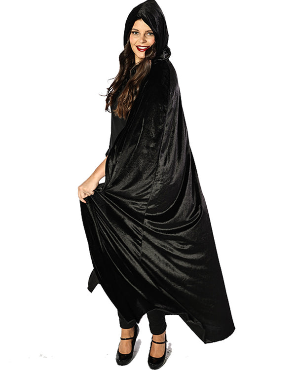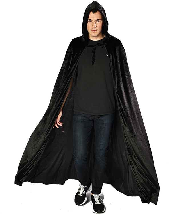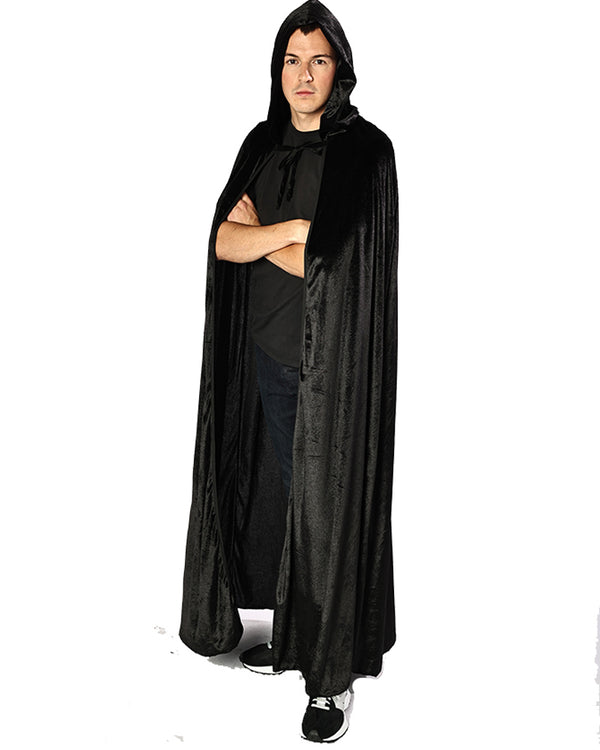 Unleash your boundless imagination and transform into any character you desire with our Black Velvet Deluxe Adults Cape. This mysterious accessory isn't just a cape; it's the key to a world of endless character possibilities. Envision yourself enveloped in this stunning hooded black cape, and suddenly, you have the canvas to become anyone or anything you've ever dreamed of for Halloween. Whether you're aiming for the eerie allure of a vampire, the mysterious charm of a witch or wizard, or the timeless elegance of any classic Halloween character, this cape is your go-to choice for a transformation that's both easy and impressive.