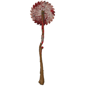 Every criminal in the Asylum needs our Bloody Circular Saw 1.52m for the most carnage. The easy Halloween accessory features a bloody saw attached to a brown wooden like handle measuring 1.5m long. Great as a weapon for a deranged killer this Halloween.