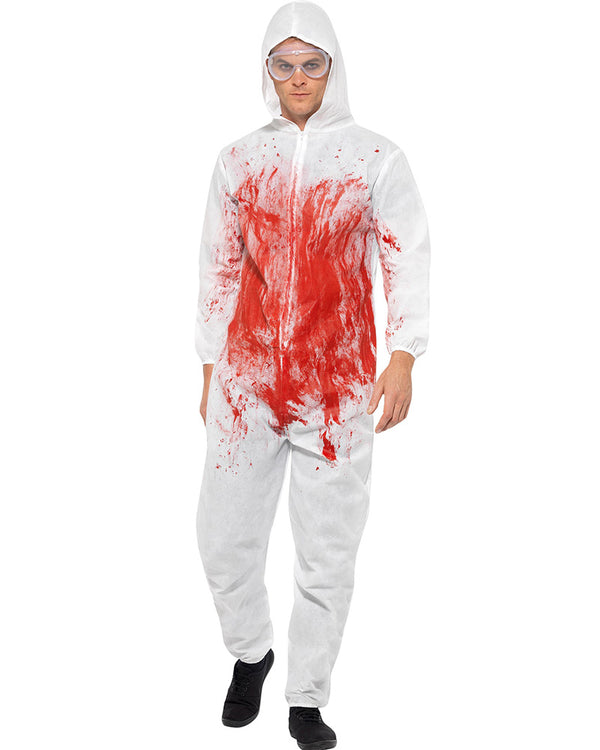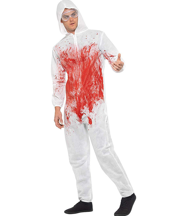 For a quick and easy Halloween costume you can't go wrong with dressing up as a Forensic Cleaner or Crime Scene Investigator with this Bloody Forensic Overalls Adult Costume. With all that mess to clean up, you've got to protect your clothes; you never know what evidence you could carry home. This costume comes with a white hooded jumpsuit with a zip up the front and a huge splattering of red blood all over the front. To finish off the look/character is a pair of clear goggles. For a complete look add some more fake blood, perhaps a magnifying glass and a pair of latex gloves.