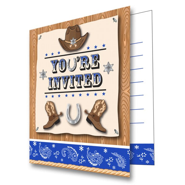 Send these Blue Bandana Cowboy Invitations Pack of 8 to your guests to let them know all your party details! Check out the other party decorations and tableware in the range for a totally co-ordinated birthday party.