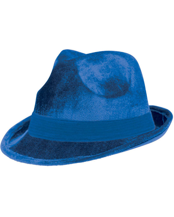Classic and contemporary, all at once! This polyester Blue Fedora Hat sports a modern colour update - vibrant blue that makes it stand out in a crowd! The brim is turned down at the front and jauntily turned up at the back. The crown is creased in true fedora fashion and finished with a blue band.