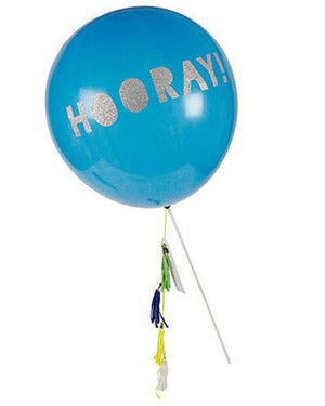 This vibrant Blue Hooray Balloon Wand will look great at your celebration. This wand features coloured tassels, satin ribbon, a tag and celebration balloon stickers with silver glitter.
