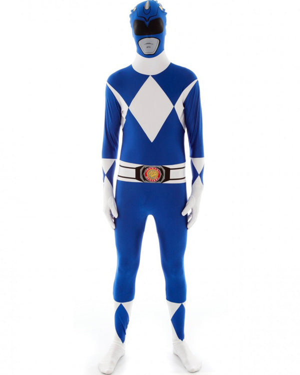 Bring back the old school Power Rangers at your next party with this Blue Power Rangers Morphsuit Mens Costume. This classic costume is sure to evoke some nostalgia! Match with our other coloured Power Rangers for a great group costume idea. This costume is an all in one jumpsuit that zips up the back. You can see and drink through the attached mask.