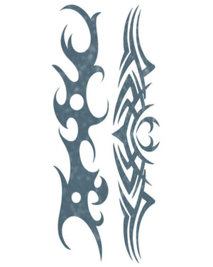 These Body Bands Tough Guy Tribals Temporary Tattoos are the perfect accessory for your biker, rock star or tough guy costume. Simply cut out the design, place where desired and apply with water. Comes with two tattoos with unique designs.