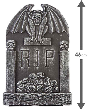 Create a spooky graveyard scene for Halloween with this eerie Boneyard Gargoyle Wings Tombstone 46cm. This foam tombstone comes with stakes for set up.