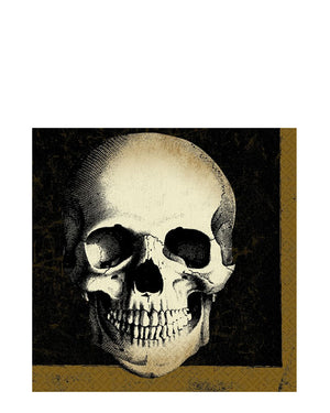 Spook up your next Halloween or birthday party with these Boneyard Lunch Napkins 6pk. The napkins feature a large skull that is somewhat fading into the black background with a gold, tattered looking boarder on two of the four sides. Combine with our range of skeleton party supplies including party cups, party plates, tablecovers and more.