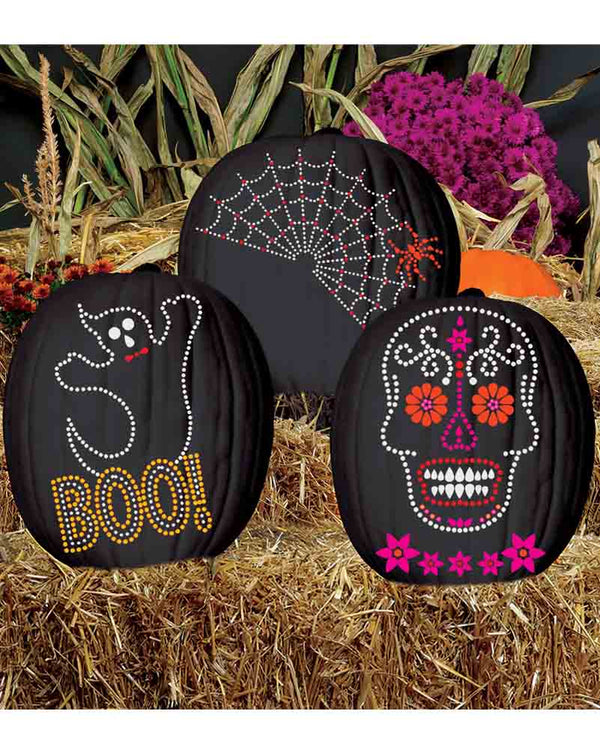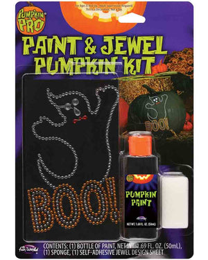 Create your own Halloween pumpkin with this Boo Paint and Jewel Pumpkin Kit. The kit includes black paint, a sponge and a set of self-adhesive jewels that create the shape of a ghost with the word Boo! underneath. Paint your pumpkin using the black paint then peel off the jewelled design and stick it on your pumpkin. No carving is necessary which makes this kit a great way for younger kids to get invloved in the jack-o-lantern fun.