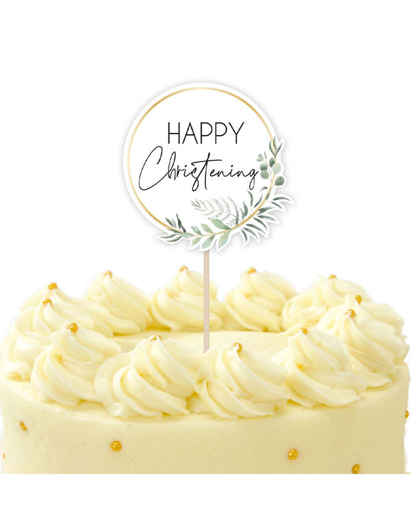 Botanical Celebration Happy Christening Cake Topper Pick 11cm