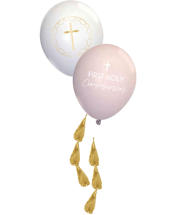 - Two pink balloons with 'First Holy Communion' print.