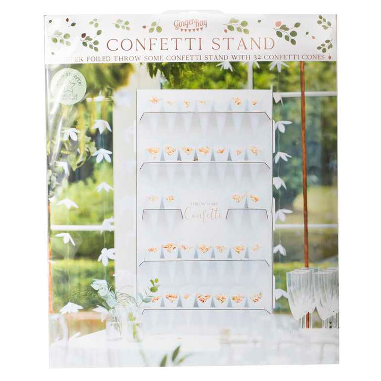 Botanical Wedding Bronze Foiled Confetti Stand With Confetti Cones Pack of 33