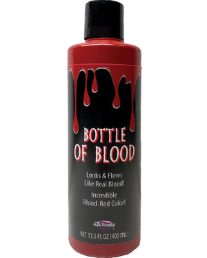 This Bottle of Blood 400ml is a great finishing touch for your next horror costume or outfit. The bottle of blood flows and has the characteristics of real blood. Perfect for making a bloody mess, will work for a wide range of special effects makeup; vampires, injuries, zombies, werewolves and more.