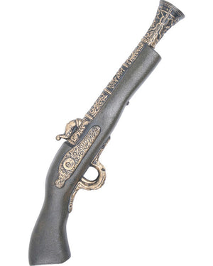 Make 'em walk the plank whilst brandishing this handsome piece of weaponry! This Brown and Gold Pirate Pistol Prop is made of hard polypropylene plastic, moulded and painted to resemble an authentic 17th-century flintlock pistol. The grip and stock of the 41cm gun are brown to resemble wood with gilt detailing for the barrel and trigger. The mouth of the barrel is bell-shaped. Accessorise any of our pirate costumes with this pistol!