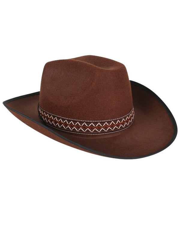 Saddle up for this amazing Brown Cowboy Hat with Woven Band. This is the perfect finishing touch to your next cowboy costume, just add a bandana and you will be sharp shooting in no time.