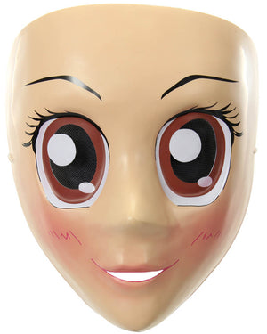 Complete your anime costume and communicate the personality of the character with this adorabe Brown Eyes Anime Mask. This molded plastic mask features eye holes that are covered with mesh material and a small mouth opening. An attached elastic band ensures that the mask stays secure in place.