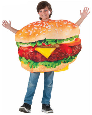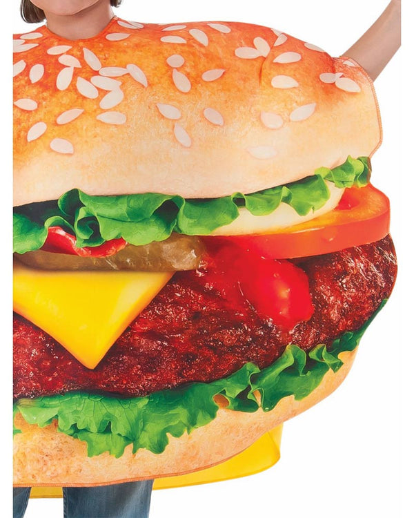 Everyone at the party will be wanting to order a Big Mac after you show up in this Burger Kids Costume. This over the head tunic features a mouth watering photo-real burger print. The tunic has holes for your arms and an open base, allowing for comfort and all day wear. A fun costume that’ll definitely make a statement (and stomach's growl) at your next food themed or dress-up party.