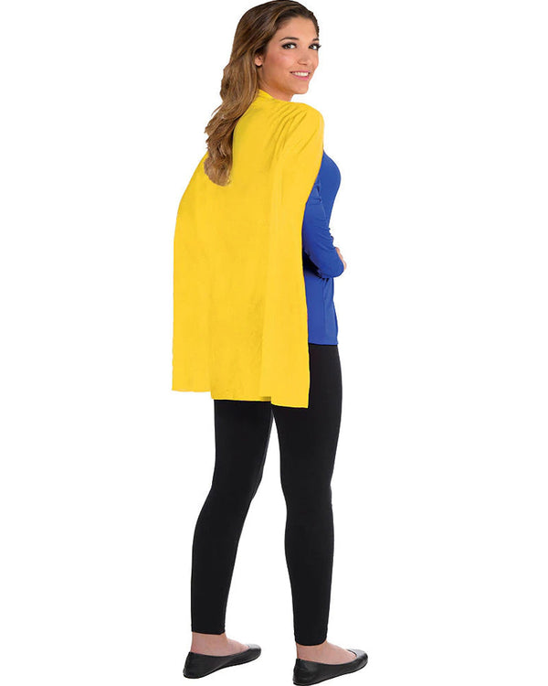 Add some bright fun to your costume with this Yellow Cape. This stand out from the crowd cape suits both adults and kids and comes in yellow, so you'll sure be noticed in the party. The cape stays on with a hook and loop closure at the neck.