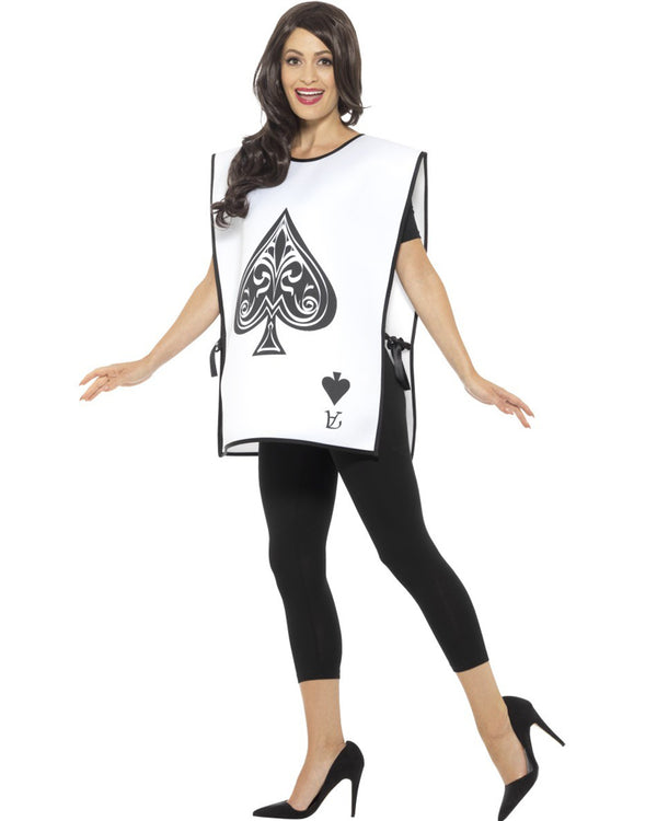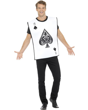 Get your poker face on and wear this Card Guard Adult Costume that comes as a revisable card tunic. The tunic is white and on one side it depicts a black and white ace of spades card while the other side depicts a 10 of hearts card. This costume is an effective idea to help you look the part without too much comittment as you can wear your own clothes underneath and slip the tunic on and off as you desire. Perfect for a costumed poker night, Casino party or even an Alice in Wonderland theme!