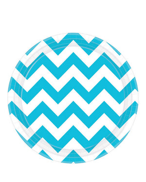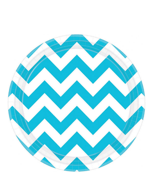 Caribbean Blue Chevron 23cm Round Paper Plates Pack of 8